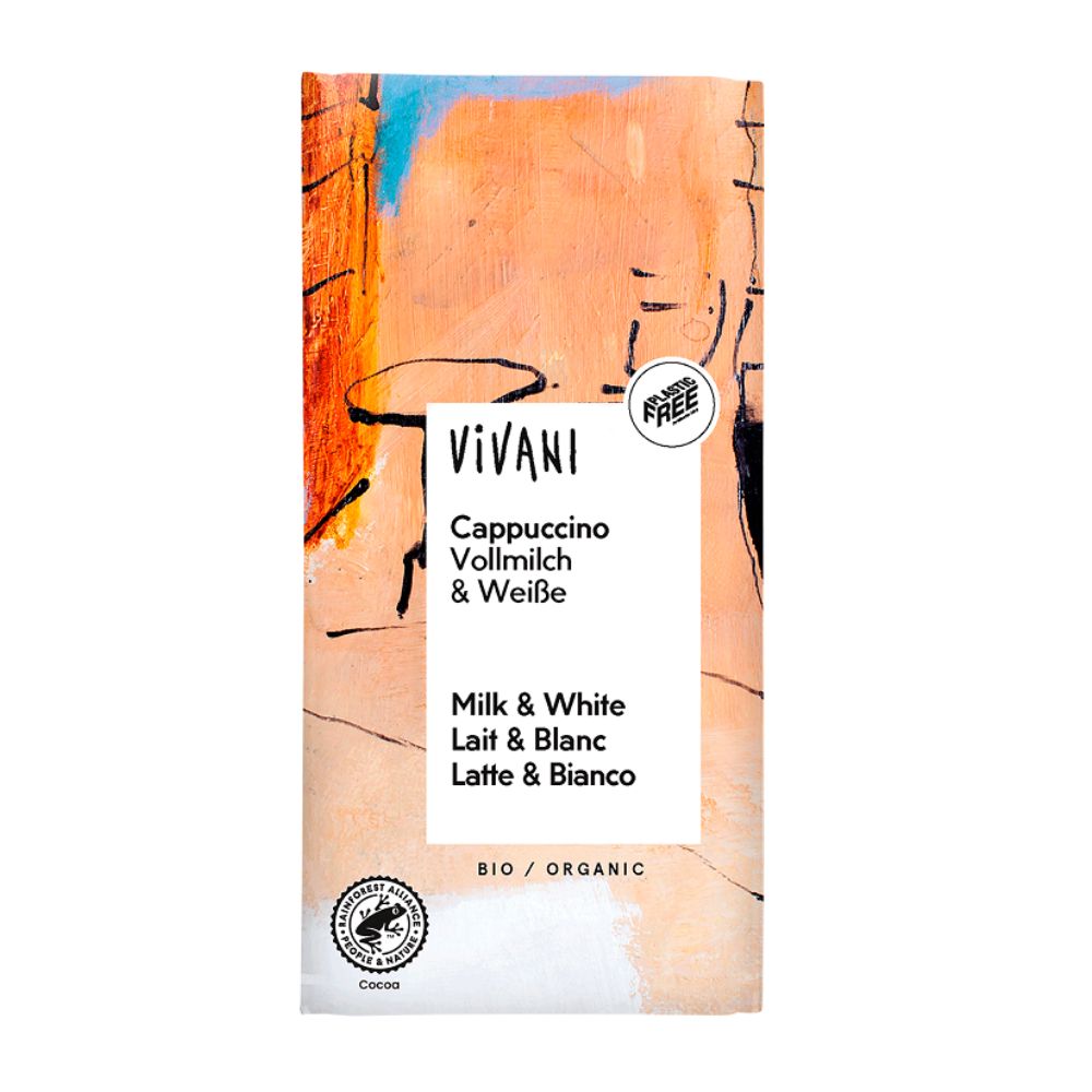 cukier trzcinowy nierafinowany*, tłuszcz kakaowy*, MLEKO pełne w proszku*, miazga kakaowa*, ŚMIETANA w proszku* (zawiera MLEKO), kawa* (2,5 %), odtłuszczone MLEKO w proszku*, SERWATKA w proszku* (zawiera MLEKO), ekstrakt z wanilii Bourbon*. (*certyfikowany składnik ekologiczny). Masa kakaowa minimum 40 %.