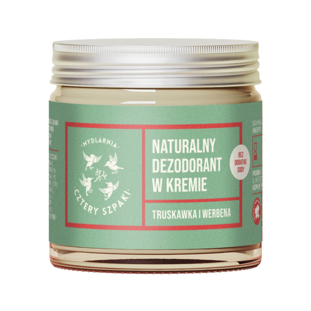 Deo Truskawka i Werbena będzie idealnym wyborem dla tych, którzy borykają się z problemem skóry wrażliwej, skłonnej do podrażnień i alergii. W tym wariancie soda oczyszczona została zastąpiona delikatniejszymi dla skóry (ale nie w działaniu) substancjami: wodorotlenkiem oraz węglanem magnezu. Z innych sprawdzonych składników absorpcyjnych (m.in. skrobi ziemniaczanej, maranty trzcinowej czy ziemi okrzemkowej) producent 4 Szpaki nie zrezygnował – są obecne i robią robotę. Czytaj: skutecznie pochłaniają wilgoć i nieprzyjemny zapach, a przy tym nie blokują naturalnego i zdrowego procesu jakim jest pocenie się.