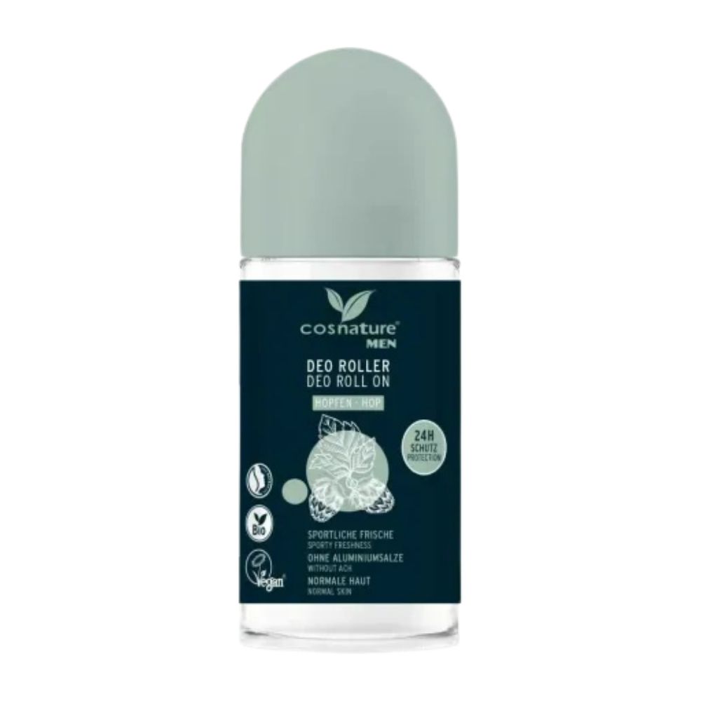 Cosnature® MEN DEZODORANT ROLL ON CHMIEL zapewnia ochronę przed nieprzyjemnym zapachem, nadając świeżą sportową nutę. Delikatna formuła z organicznymi ekstraktami z zielonej herbaty, czarnego pieprzu i chmielu odżywia i chroni przez cały dzień.