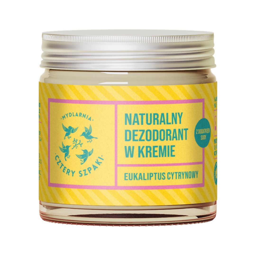 Dezodorant w kremie Eukaliptus Cytrynowy to naturalna alternatywa dla antyperspirantu - skutecznie pochłania wilgoć, niweluje nieprzyjemny zapach i zapewnia uczucie komfortu, nie blokując przy tym niezbędnego ciału procesu, jakim jest pocenie.