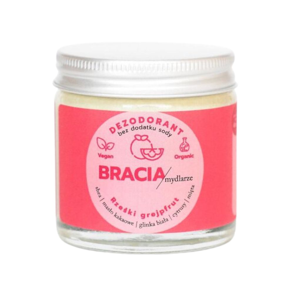 Dezodorant w kremie od Braci Mydlarzy swoją skuteczność zawdzięcza kilku składnikom aktywnym. Głównymi bohaterami są wodorotlenek magnezu i sól cynku, które absorbują nieprzyjemny zapach. Ich działanie wspomagają olejki eteryczne: z mandarynki, białego grejpfruta, cytryny i mięty.