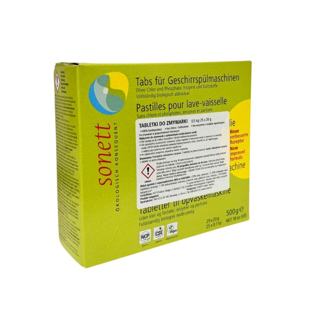 Tabletki do zmywarki Sonett zawierają minerały i składniki organiczne w pełni biodegradowalne.