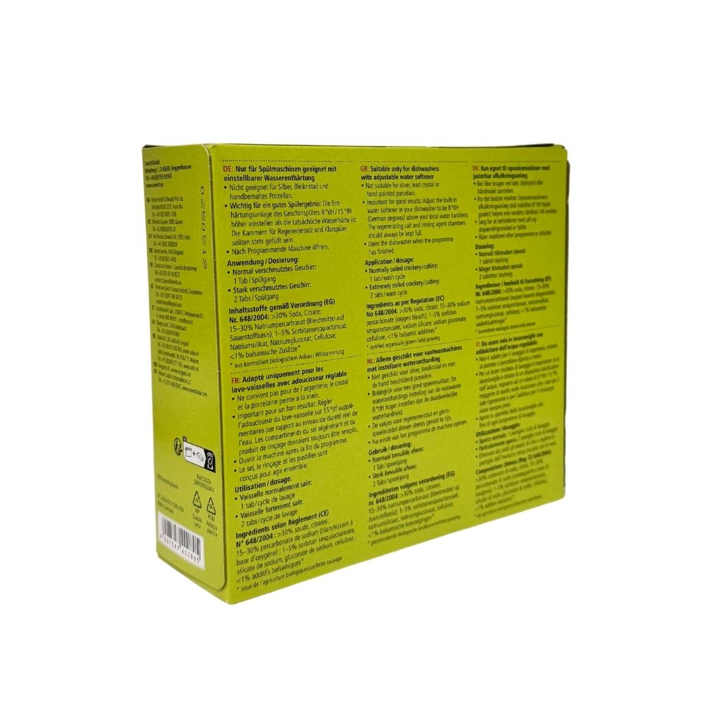 Stworzone do zmywarek w gospodarstwach domowych - wyłącznie do zmywarek z ustawialnym zmiękczaniem wody. Formuła nieodpowiednie do srebra, kryształów i ręcznie malowanej porcelany. Do użytku wyłącznie z naczyniami nadającymi się do zmywania w zmywarce (dishwasher-proof).