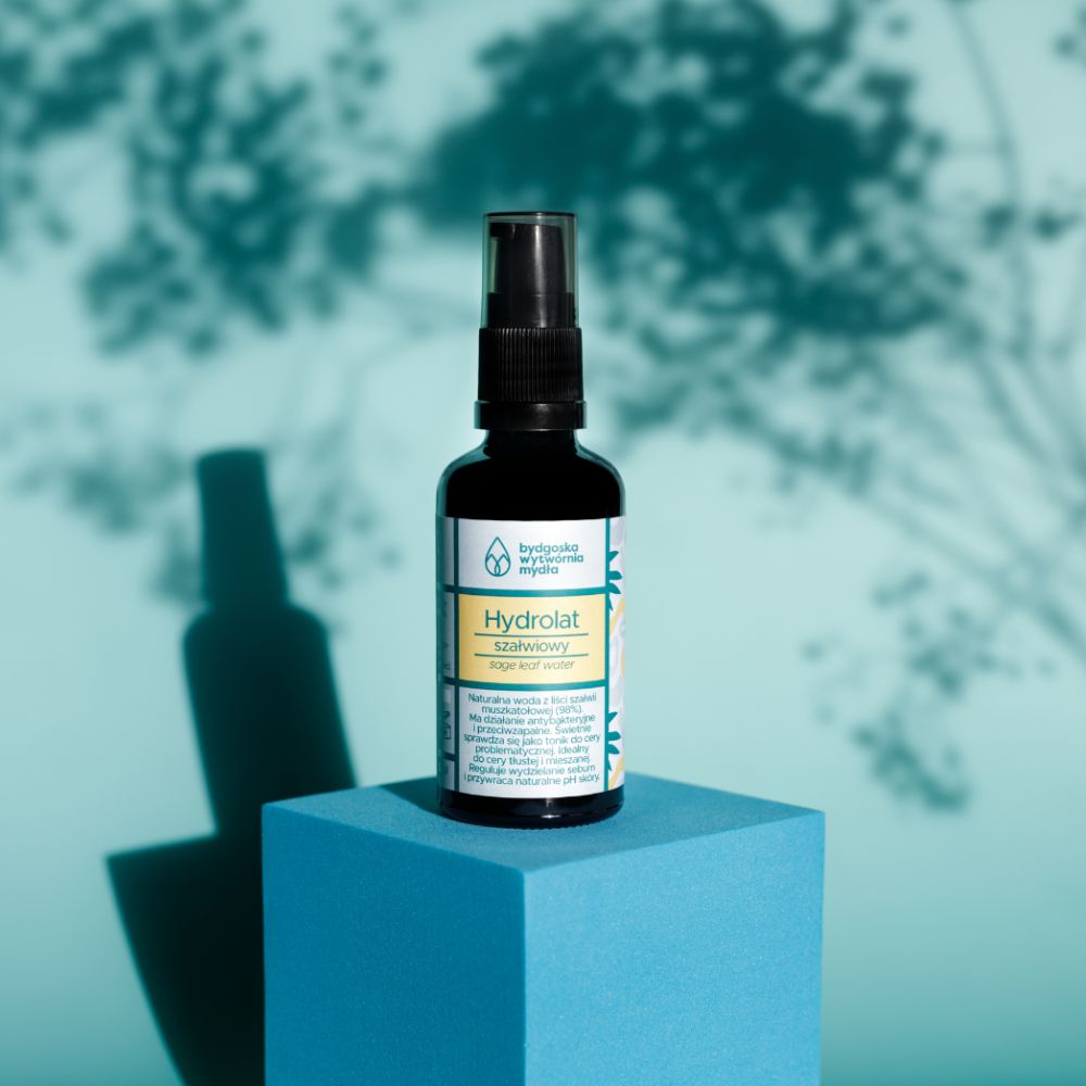 Hydrolat szałwiowy odświeża, oczyszcza i działa przeciwzapalnie.