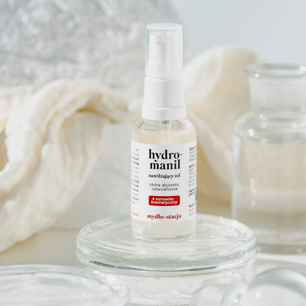 Hydromanil lubi być określany jako System Sekwencyjnej Dostawy Nawilżenia. Poprzez budowę składającą się z różnych wielkości cząsteczek utrzymuje on skórę w stanie nawilżenia zarówno wewnętrznego (małe cząsteczki) jak i zewnętrznego (duże cząsteczki zatrzymujące się w warstwie rogowej skóry).