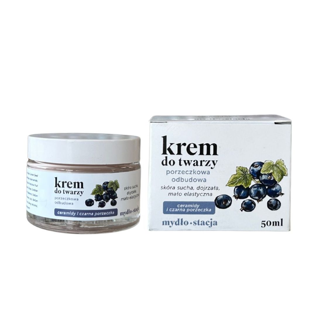 Porzeczkowa Odbudowa to naturalny krem do twarzy z ceramidami i olejem z czarnej porzeczki, opracowany z myślą o skórze suchej, dojrzałej i mało elastycznej. Dzięki starannie dobranym składnikom aktywnym wspiera odbudowę bariery hydrolipidowej, pomaga ograniczyć ucieczkę wody z naskórka i zapewnia uczucie odżywienia i regeneracji.