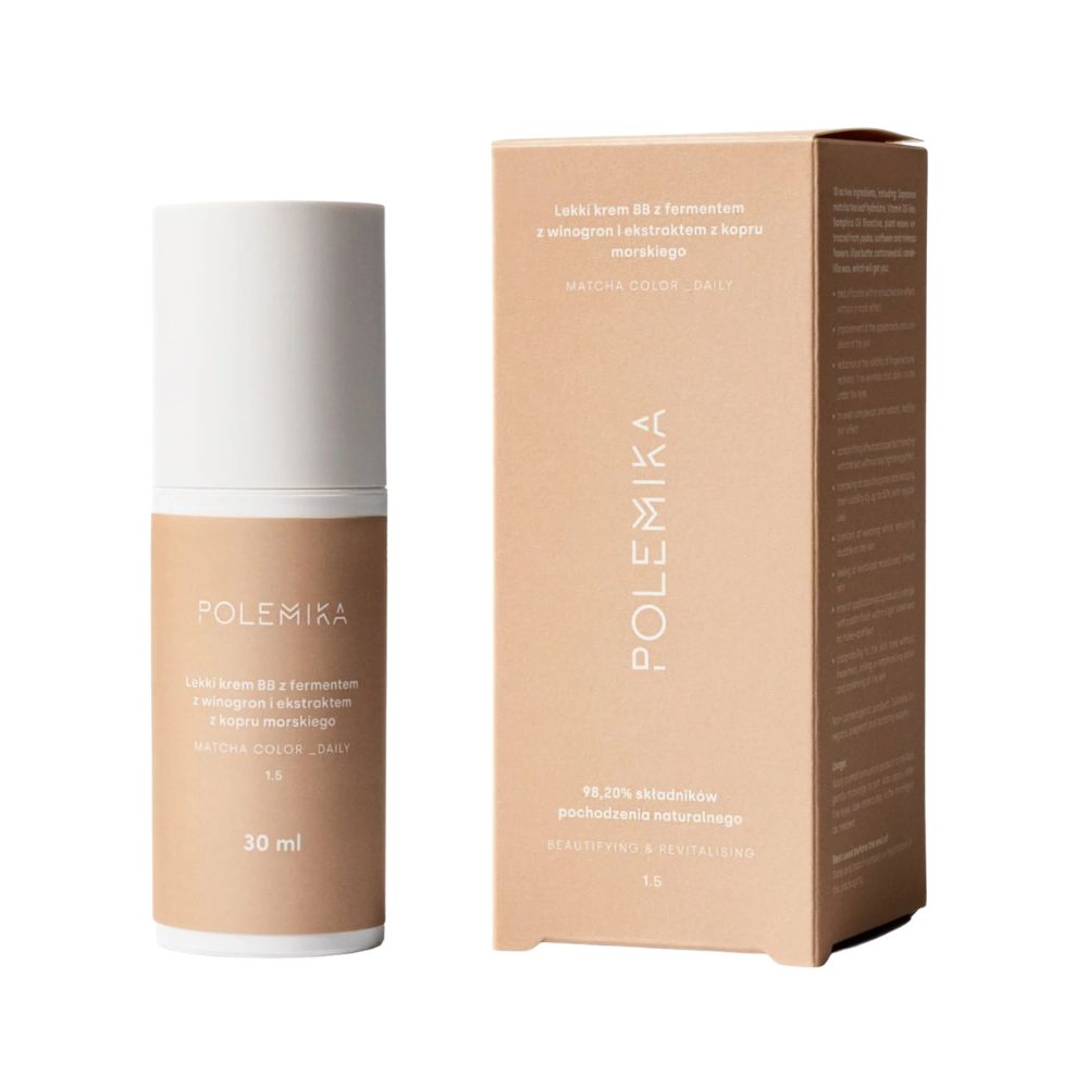 Lekki rewitalizujący krem BB z fermentem z winogron i ekstraktem z kopru morskiego to krem, który odmienia spojrzenie na makijaż, łącząc ze sobą pielęgnację i upiększenie. Unikatowa kombinacja naturalnych, roślinnych wosków pozyskiwanych z kwiatów jojoby, słonecznika i mimozy sprawia, że skóra staje się nawilżona i odżywiona. Tym produktem udowadniamy, że makijaż choć lekki, może być piękny i naturalny. Ekstrakt z kopru morskiego zmniejsza widoczność zmarszczek, ujednolica skórę oraz reguluje wydzielanie sebum, a fermentowany ekstrakt z winogron działa antyoksydacyjnie, antybakteryjnie i łagodząco, poprawiając funkcje barierowe skóry. Stymuluje również syntezę receptora witaminy D.