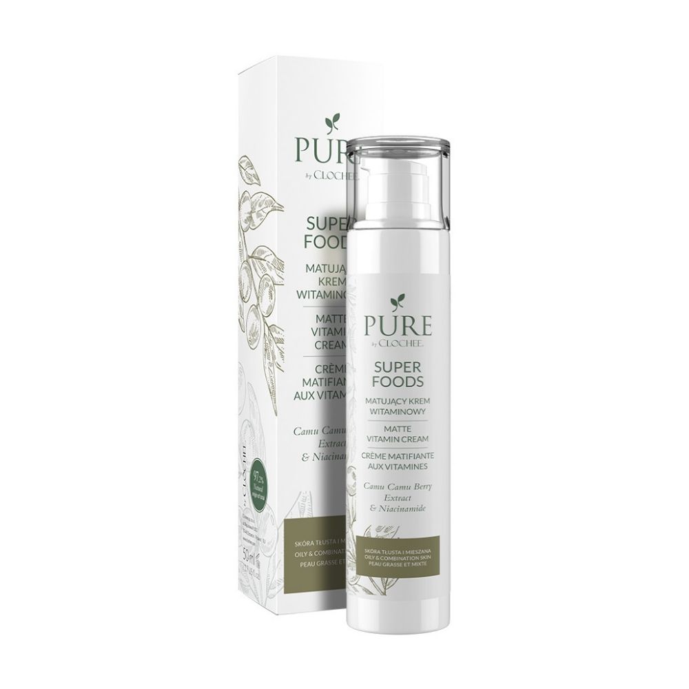 Matujący krem SUPERFOODS w swoim składzie zawiera ekstrakty pochodzenia naturalnego m.in. ekstrakt z jagody camu camu- nazywany ekstraktem młodości, który jest źródłem witaminy C i składników mineralnych.