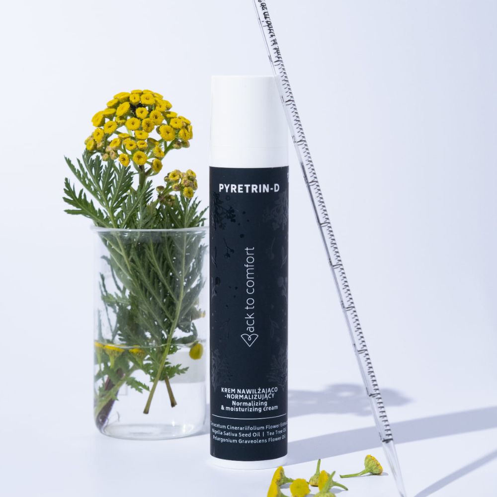 Nawilżający krem do codziennej pielęgnacji. Łagodzi, normalizuje i regeneruje skórę wrażliwą, skłonną do rumienia oraz trądziku. Formuła zawiera ekstrakt z wrotycza dalmatyńskiego i olej z nasion czarnuszki, wzbogacona o naturalne olejki eteryczne z drzewa herbacianego i olejek geraniowy. Pełnią one funkcję naturalnych składników zapachowych, odświeżających oraz łagodzących. Krem został stworzony dla osób z trądzikiem różowatym oraz z infekcją nużeńcem, jednak idealnie sprawdzi się również przy trądziku pospolitym, rumieniu i zaskórnikach. Odpowiedni również dla mężczyzn, szczególnie jako pielęgnacja po goleniu.