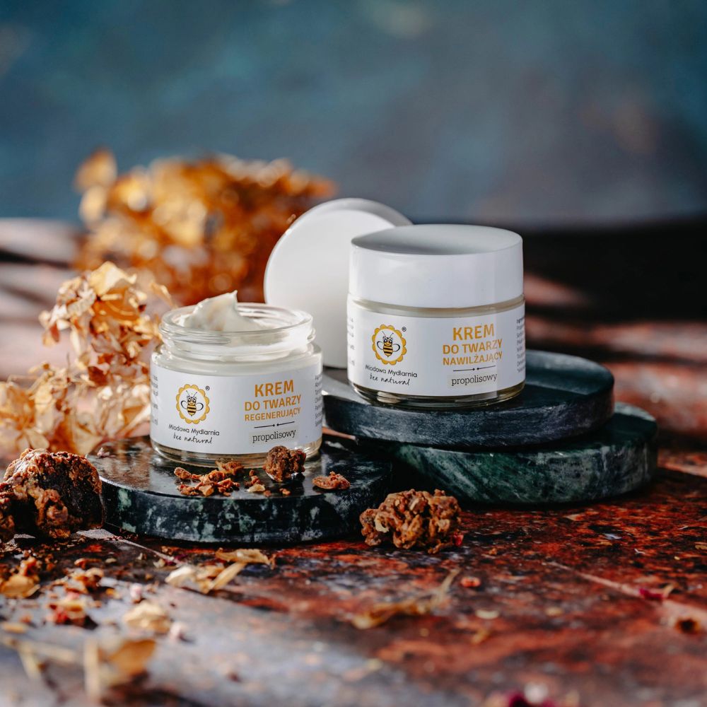 Przed pierwszą aplikacją kremu, zrób próbę uczuleniową na małym fragmencie skóry, np. za uchem, by wykluczyć nadwrażliwość lub uczulenie na jakikolwiek składnik kosmetyku, w tym propolis.