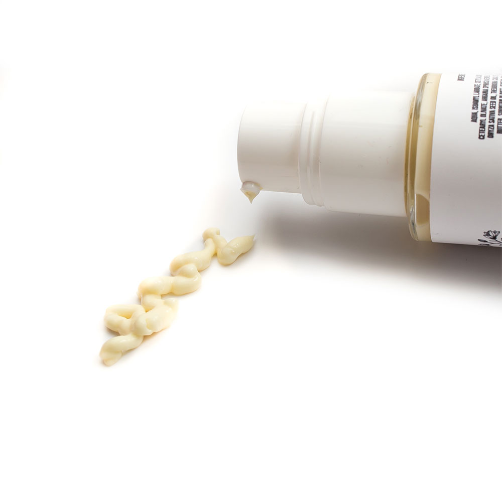 Woda, emolient, naturalny emulgator, olej arganowy, olej ryżowy, masło kakaowe, gliceryna, witamina A, pantenol, arginina, kwas hialuronowy, witamina E, rozmaryn, koenzym q10, opuncja figowa, alkohol benzylowy, kwas fitowy, olej słonecznikowy.