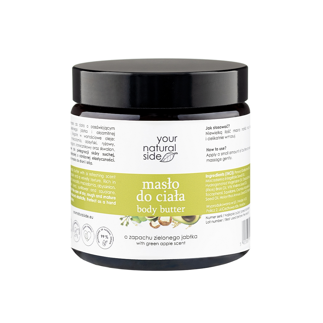 Delikatne masło do ciała o orzeźwiającym zapachu soczystego jabłka wprowadzi do Twojej pielęgnacji odrobinę szaleństwa. Lekka formuła bogata w oleje awokado, makadamia, abisyński, ryżowy, z pestek winogron oraz słonecznikowy otula skórę, zabezpieczając ją przed nadmierną utratą wody.