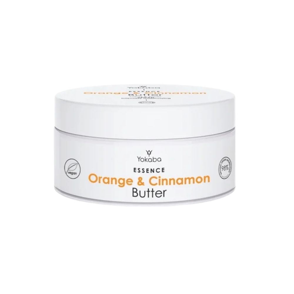 Bogate, wegańskie masło do ciała o ciepłym zapachu pomarańczy i cynamonu z nutą wanilii.