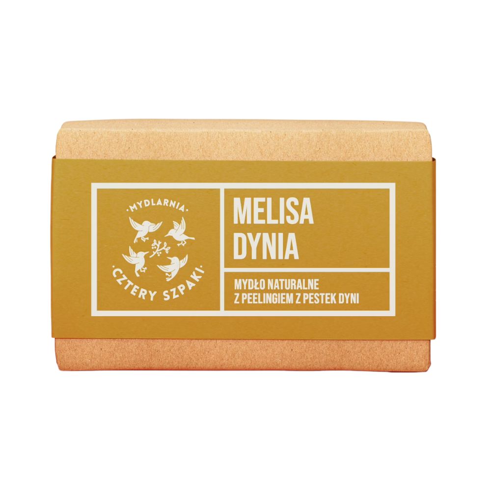 To mydło zniewala potężnym, orzeźwiającym aromatem melisy, mięty i cytryny. Obok jego zapachu nie sposób przejść obojętnie - jest intensywny, ale nieprzytłaczający. Jeśli mydło może być pozytywne i wesołe to Melisa Dynia taka właśnie jest - poprawia humor jak żaden inny kosmetyk. Efekt peelingujący został uzyskany dzięki dodaniu do niej wytłoczyn z pestek dyni. Przypadnie do gustu osobom, które lubią mocniejsze peelingi - te drobiny nie dadzą szans martwemu naskórkowi - pozostawią skórę gładką i pobudzą mikrokrążenie.