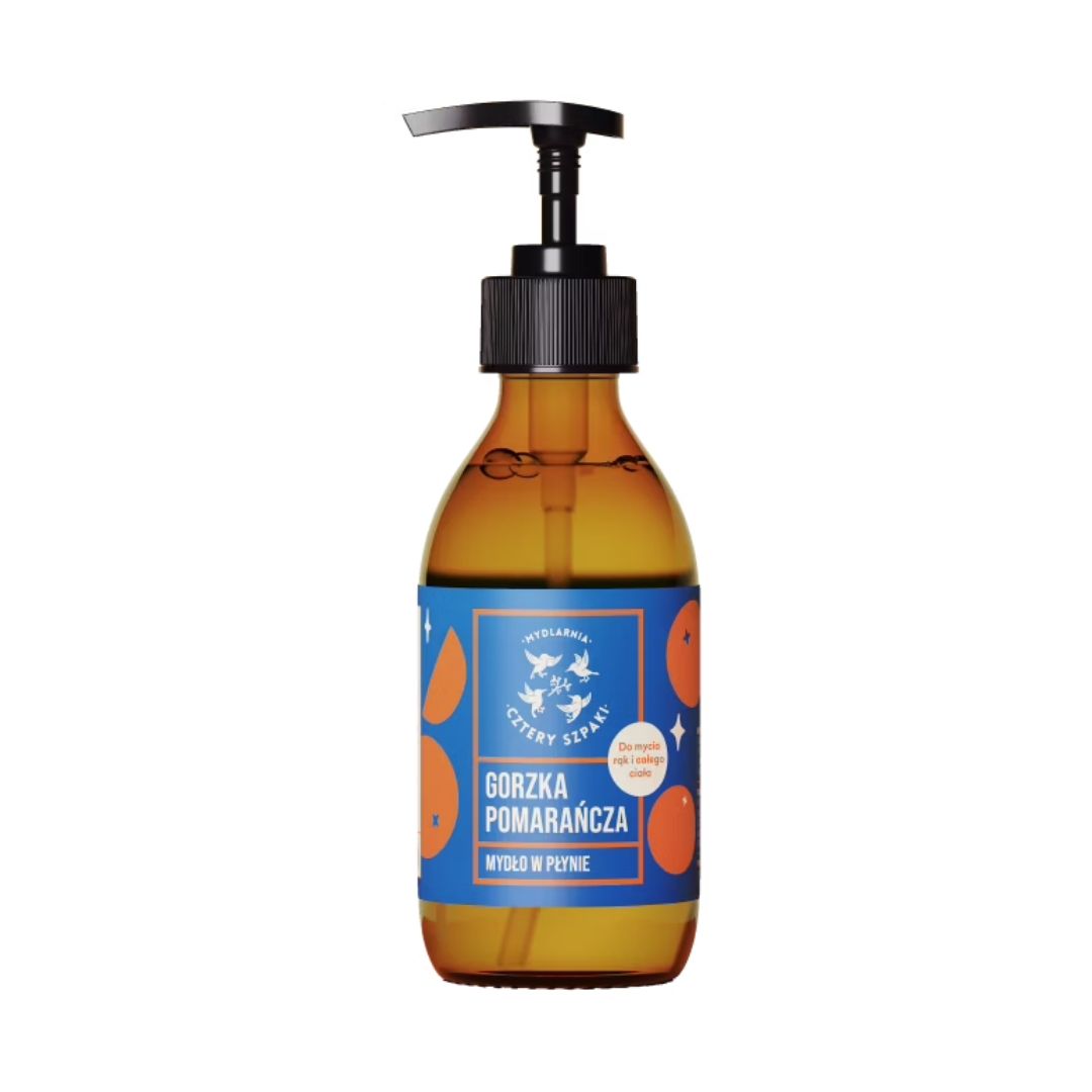 Mydło w płynie Gorzka Pomarańcza od 4 Szpaków to gęsta i wydajna formuła oparta na naturalnych, roślinnych składnikach. Doskonale rozprowadza się po skórze, tworząc aromatyczną pianę o cytrusowo-ziołowym zapachu.