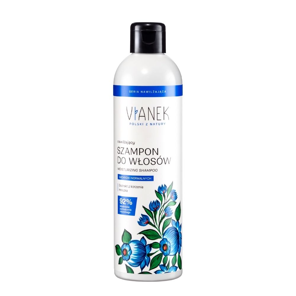 Delikatny szampon do mycia włosów suchych i normalnych (marki Vianek – producenta Sylveco) łagodnie oczyszcza, nie podrażniając przy tym skóry głowy.