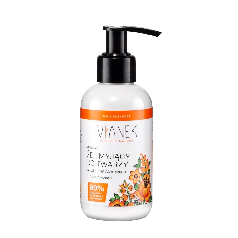Naturalny żel do twarzy z ekstrakrem z miodunku, olejem z pestek moreli, miodem i lecytyną sojową przeznaczony jest do codziennego mycia wszystkich rodzajów skóry. Zawiera łagodne detergenty, skutecznie oczyszczające twarz z makijażu i zabrudzeń.