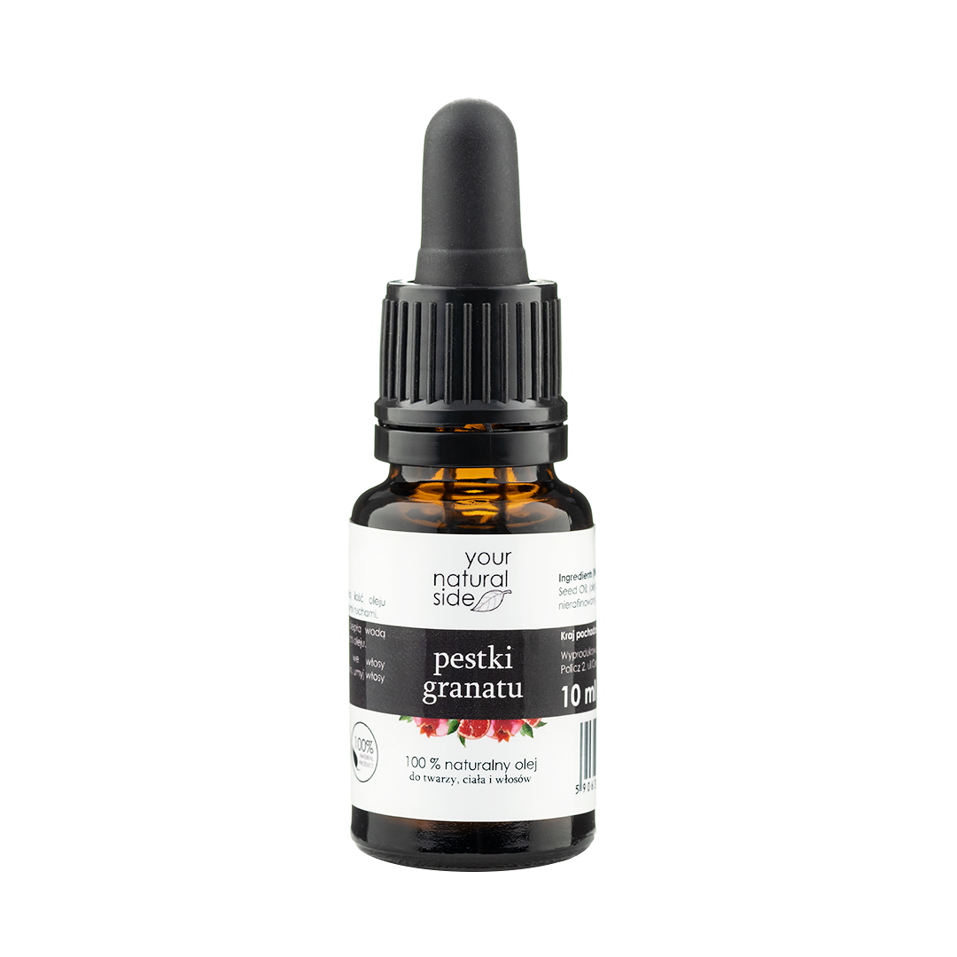 Olej z pestek granatu polecany jest do pięlęgnacji skóry problemowej, wrażliwej, przesuszonej i alergicznej. Wzmacniania skórę dojrzałą z widocznymi oznakami starzenia oraz po nadmiernej ekspozycji słonecznej. Szybko się wchłania i nie zapycha porów.