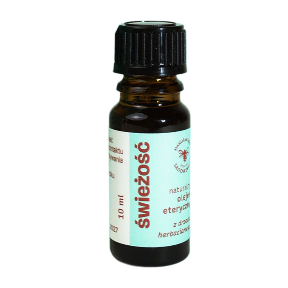 Olejek ŚWIEŻOŚĆ zawiera 100% składników naturalnego pochodzenia i nie zawiera żadnych dodatków ani rozcieńczaczy. Pozyskiwany jest z liści drzewa herbacianego metodą destylacji parą wodną. Wyróżnia się jasną barwą i mocnym, ziołowym aromatem, który dobrze komponuje się zarówno z porannym rytuałem pobudzenia, jak i wieczornym oczyszczaniem.