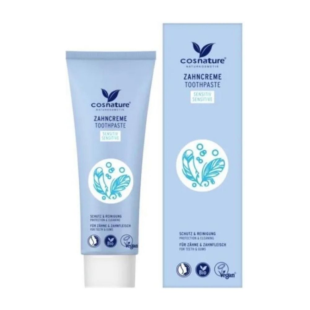 Pasta do zębów z rumiankiem, miętą i fluorem, opracowana specjalnie dla osób o wrażliwych zębach i dziąsłach, delikatnie usuwa płytkę nazębną i chroni zęby przed próchnicą.
