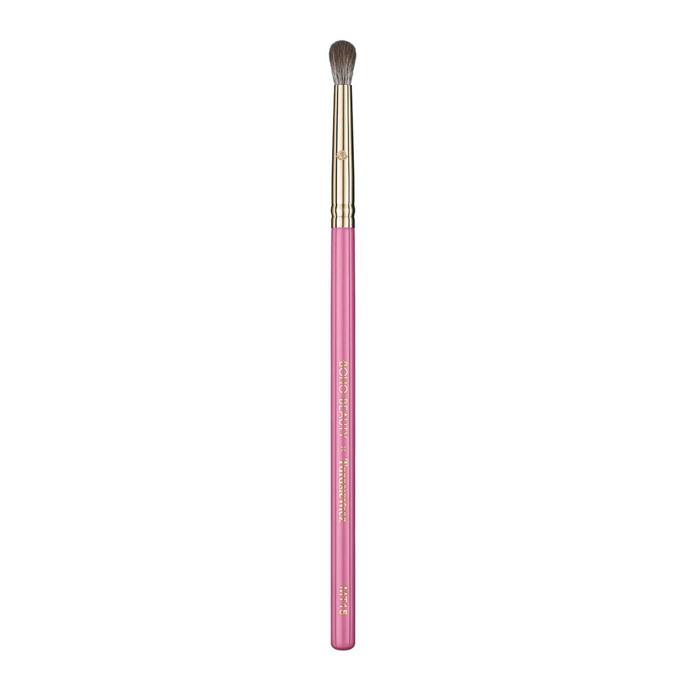 MT15 to pędzel do perfekcyjnego blendowania cieni na dolnej powiece, którego główka została wykonana z włosia kukurydzianego. Podłużna, na końcu zaokrąglona główka pędzla umożliwia równomierne roztarcie produktu i precyzyjną aplikację. Świetny do aplikacji cieni w wewnętrznym kąciku oka. Doskonale pracuje z kosmetykami o pudrowych formułach.