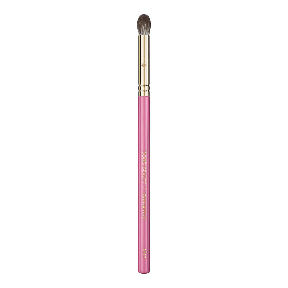 MT7 to pędzel do blendowania cieni, którego główka została wykonana z włosia kukurydzianego. Jego odpowiednio gęste włosie ułożone w stożkowy kształt umożliwia precyzyjne roztarcie produktu i stworzenie miękkich przejść w makijażu oczu. Doskonale pracuje z kosmetykami o formule pudrowej.