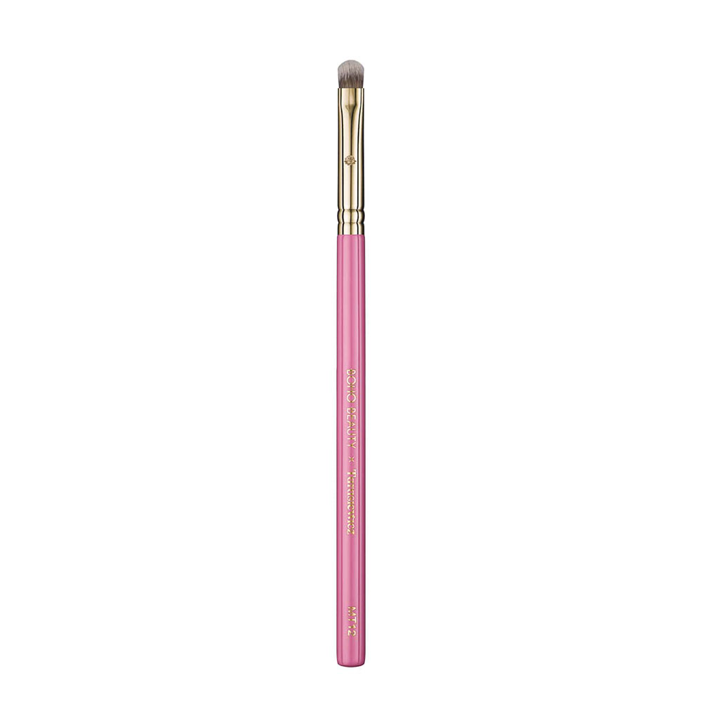 MT12 to mały pędzelek do aplikacji cieni o mokrych oraz sypkich formułach, którego główka została wykonana z włosia syntetycznego. Jego odpowiednio gęste włosie w kształcie języczka umożliwia precyzyjną aplikację, na przykład w wewnętrzny kącik oka. Doskonale pracuje z kosmetykami o różnych formułach.