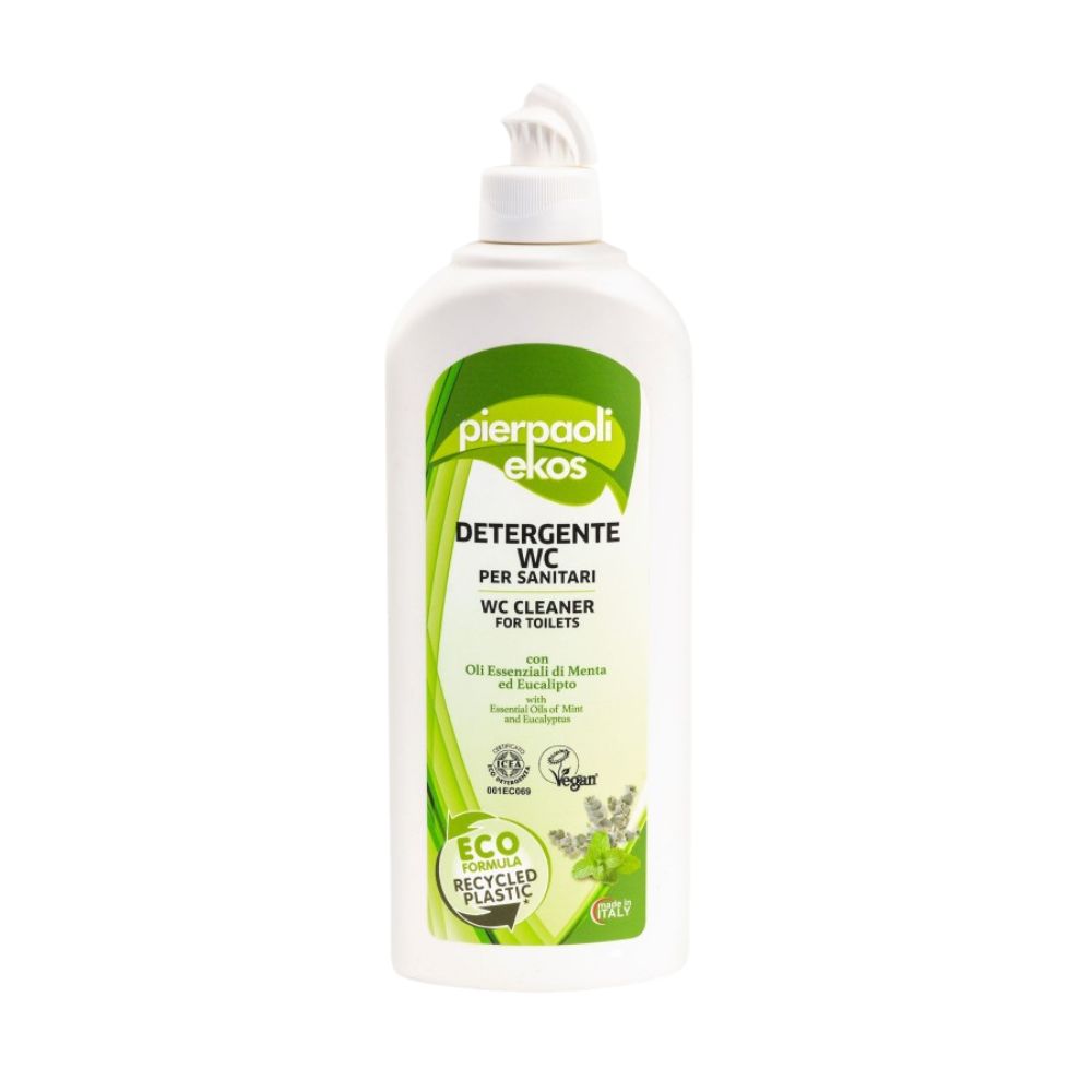 Płyn do toalet Pierpaoli Ekos to produkt ekologiczny, przeznaczony do czyszczenia sanitariatów. Został skomponowany z roślinnych surfaktantów pochodzących ze źródeł odnawialnych, co ma na celu ochronę środowiska i bezpieczeństwo użytkowników produktu. Redukcja wpływu na środowisko została obliczona metodą Critical Dilution Volume, która uwzględnia biodegradowalność produktu i toksyczność jego wobec naturalnych systemów wodnych.