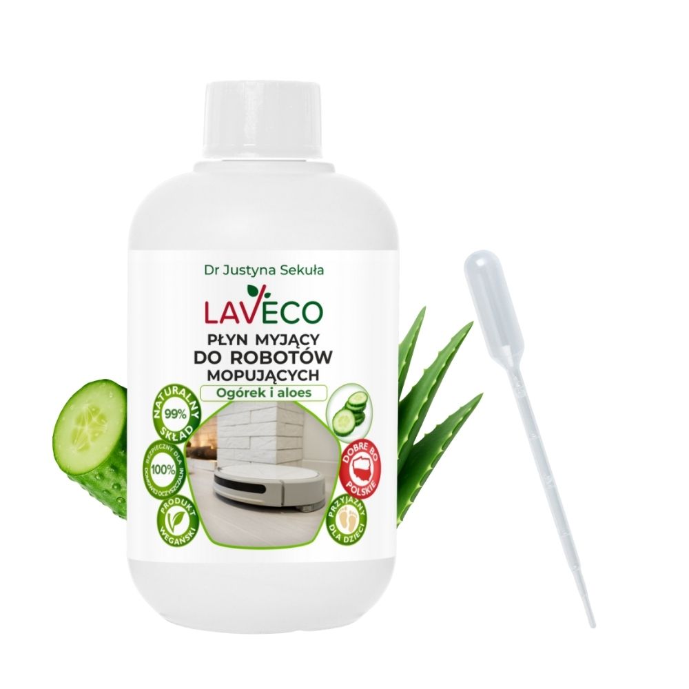 Płyn LAVECO to naturalny środek dedykowany do robotów mopujących i maszyn czyszczących. Stworzony z naturalnych surowców, z łatwością usuwa zaschnięty brud, jednocześnie pielęgnując podłogę. Jest przy tym bezpieczny dla środowiska i nie stanowi zagrożenia dla dzieci i zwierząt.