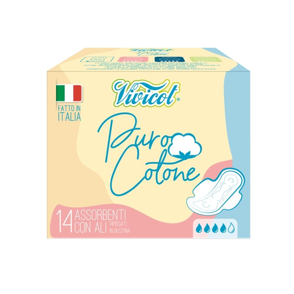 Podpaski, wkładki i tampony z serii Vivicot Puro Cotone są produkowane z czystej bawełny. Brak agresywnych środków wybielających takich jak chlor gwarantuje, że włókna podpasek są hipoalergiczne, co oznacza, że w naturalny sposób ich kontakt ze skórą nie powoduje alergii, podrażnień i zapalenia skóry.