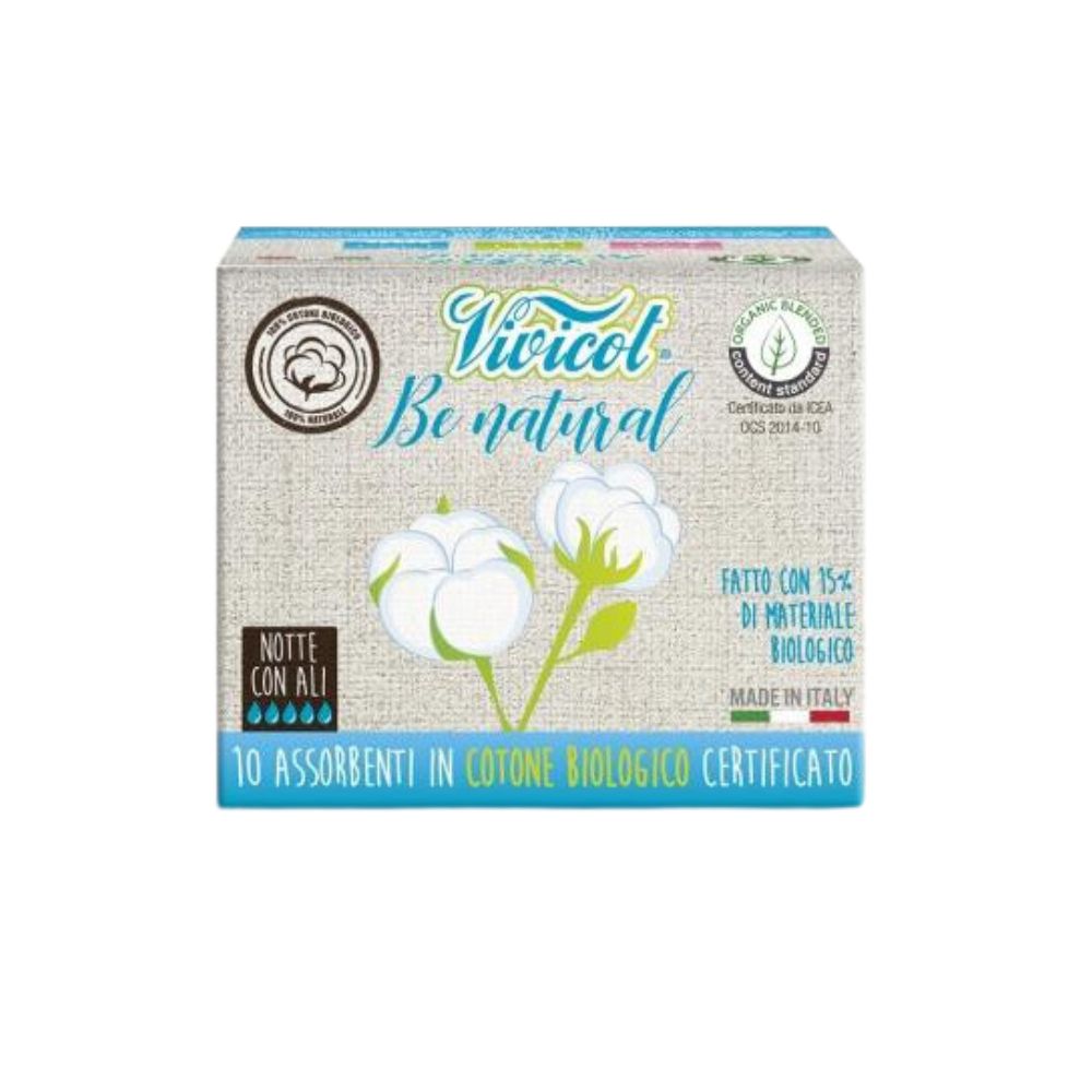 Podpaski i tampony z serii Vivicot Be Natural są wyprodukowane w 100% z bawełny, z organiczną bawełną w kontakcie ze skórą, aby zapewnić większą hipoalergiczność i oddychalność. Zawartość bawełny organicznej wynosi 15%.