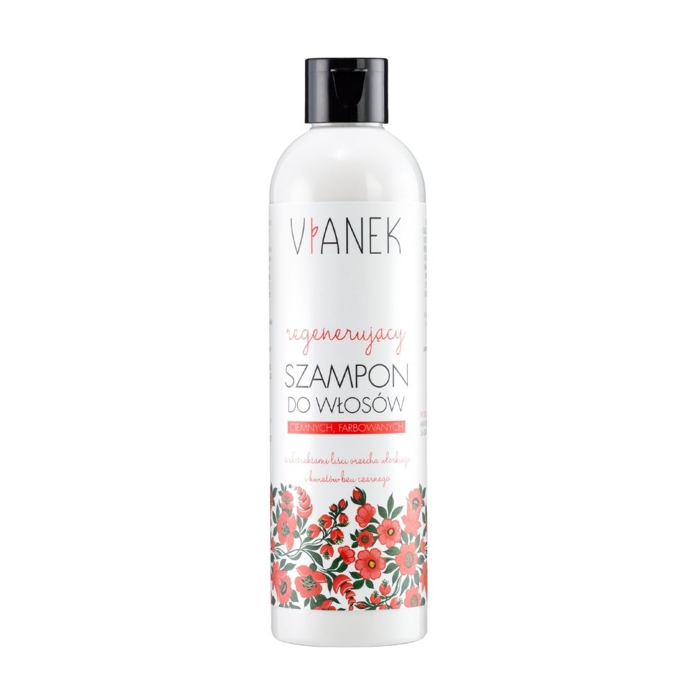 Regenerujący, delikatny szampon do włosów z czerwonej serii Vianek przeznaczony jest do pielęgnacji włosów naturalnie ciemnych i farbowanych.