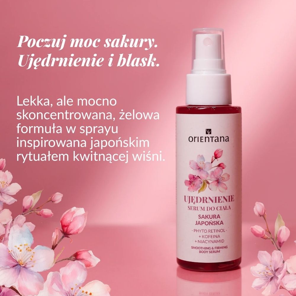 Ujędrniające serum do ciała Sakura Japońska to lekkie, szybko wchłaniające się serum w formie żelu, stworzone z myślą o skórze, która potrzebuje poprawy napięcia, sprężystości i wygładzenia. Formuła oparta na fito-retinolu, kofeinie, niacynamidzie i alginie działa wielokierunkowo: ujędrnia, wygładza i wizualnie poprawia kondycję skóry, bez efektu lepkości.