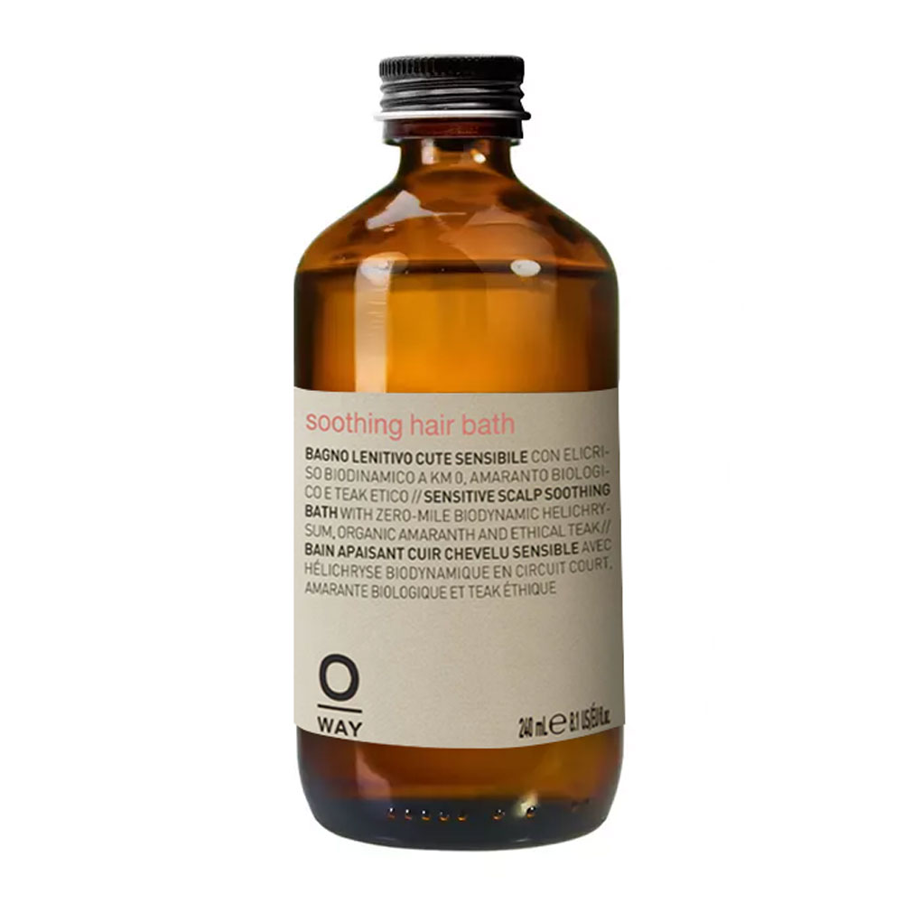 Kąpiel do wrażliwej skóry głowy OWAY Soothing redukuje podrażnienia i świąd oraz przywraca utracone uczucie komfortu. Kosmetyk nie zawiera agresywnych środków myjących, dzięki czemu nie wywołuje podrażnień i zaczerwienienia skalpu. Mimo zawartości łagodnych substancji szampon Soothing Hair bath skutecznie oczyszcza skórę głowy z wszelkich zanieczyszczeń i pozostałości kosmetyków do stylizacji włosów.