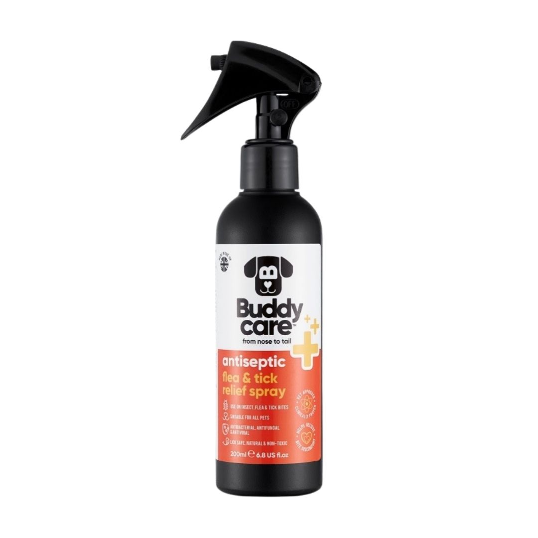 Zapewnij swojemu futrzanemu przyjacielowi ochronę i komfort dzięki antyseptycznemu sprayowi na ugryzienia pcheł i kleszczy dla psów Buddycare. Specjalnie opracowana formuła przeznaczona do stosowania w miejscach ukąszeń, zapewniająca natychmiastową ulgę w przypadku ukąszeń i podrażnień skóry.