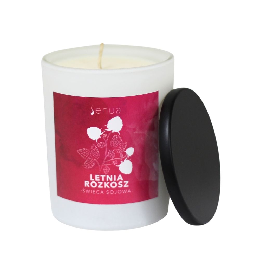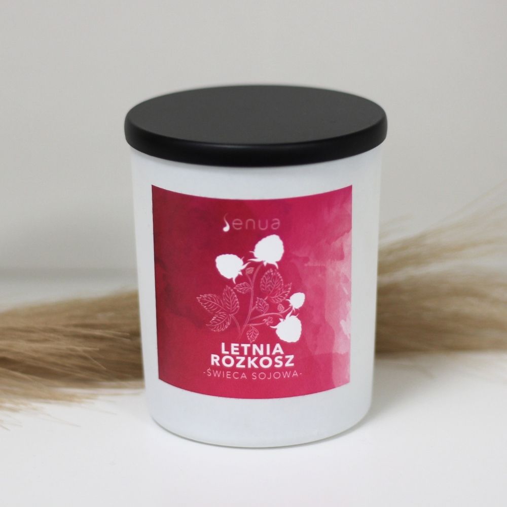 To świeca, która przypomni Ci o letnich dniach. Polskiej ziemi skąpanej gorącym słońcem. Lokalnych owocach kupionych na targu lub zbieranych w przydrożnym sadzie. Zapalaj świecę LETNIA ROZKOSZ zawsze wtedy, kiedy masz ochotę przenieść się do miejsca słodkiego i miłego. Niech to będzie miejsce Twoich marzeń, które pachnie letnimi owocami. Po roztopieniu się wosku nuty głowy (owocowe, lekko cierpkie) łączą się wręcz idealnie z ciepłymi zapachami rubinowej czekolady i tonki.