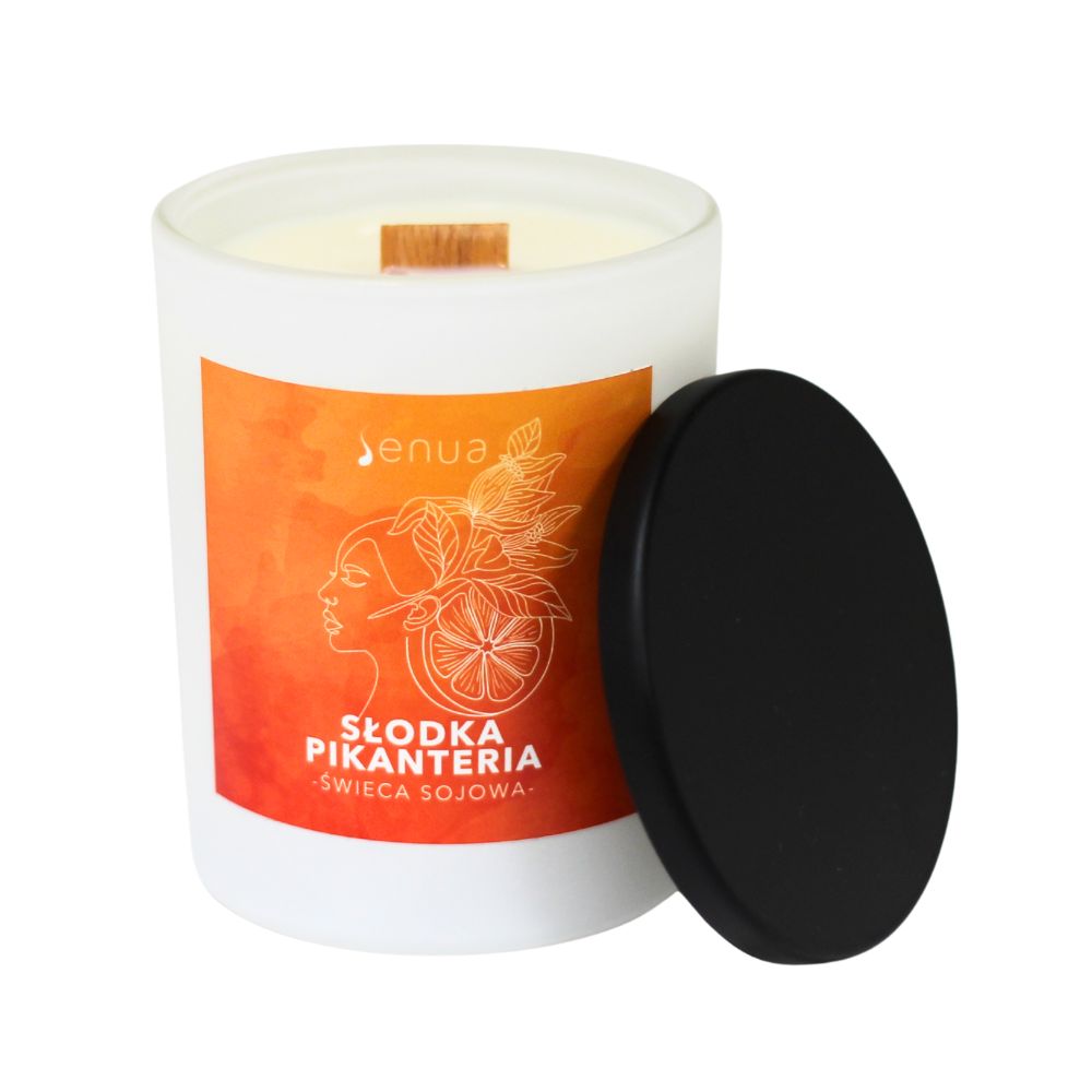 Zapal teraz świecę PIKANTNA SŁODYCZ. Pozwól, żeby płomień świecy ocieplił wnętrze. Zrobiło Ci się ciepło w środku, chodź na zewnątrz mgliście i ponuro? To dobrze. Zrób głęboki wdech. Teraz lepiej? Daj zanurzyć się umysłowi w otulającym zapachu. Niech Twoje nozdrza poczują gorącą herbatę, z której unosi się para oraz ciepły płomień świecy, który rozjaśnia pomieszczenie.
