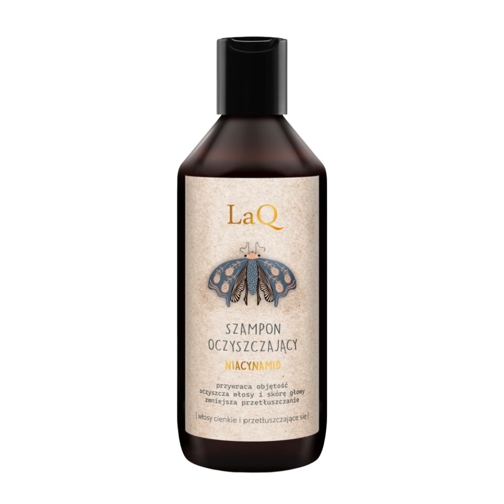Jestem naturalnym szamponem oczyszczającym z niacynamidem, pielęgnującym włosy cienkie i przetłuszczające się. Moja receptura bazuje na łagodnych substancjach myjących pochodzenia roślinnego, a pH jest neutralne dla Twojej skóry.