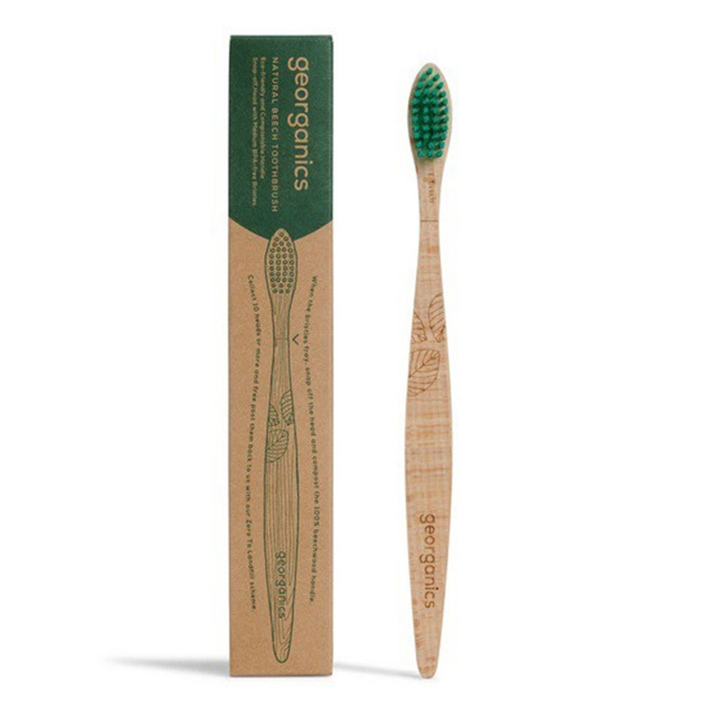 Rękojeść szczoteczki wykonana jest z trwałego drewna bukowego FSC, odpowiedniego do domowego kompostu. Na miejsce każdego ściętego drzewa wykorzystywanego do produkcji szczoteczek jest sadzone nowe, a reszta materiału, która pozostała, jest przeznaczana do ogrzewania fabryki.