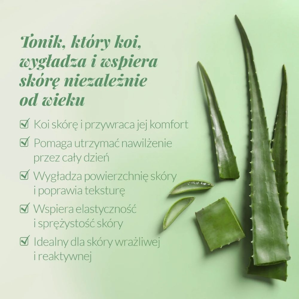Dzięki temu tonik do twarzy działa wielokierunkowo: łagodzi, wygładza i przywraca skórze komfort już na etapie tonizacji.