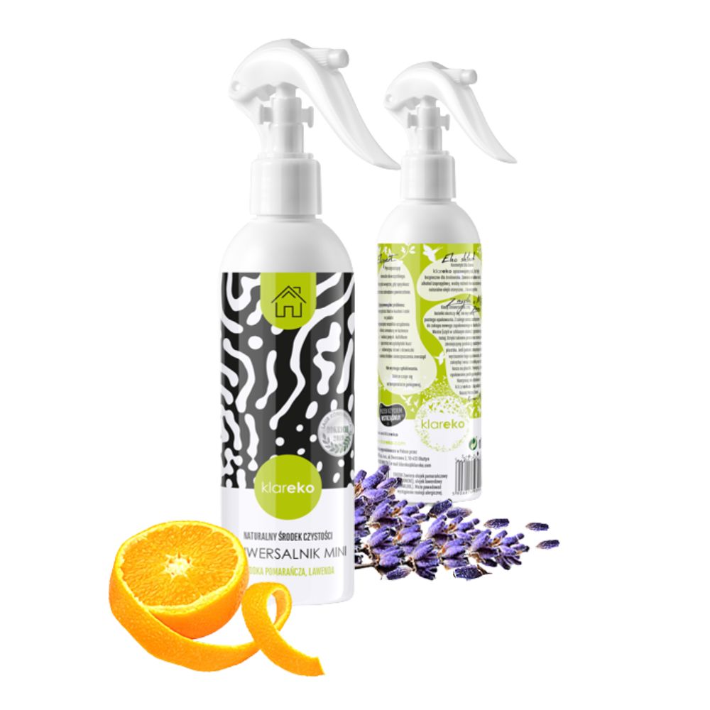 Uniwersalnik KLAREKO w butelce ze spryskiwaczem to gentelman, który jest zawsze gotowy do działania. Zniewalający zapach płynu to aromaterapeutyczny efekt, który uzyskałyśmy dodając do naszych kosmetyków dla domu wyłącznie naturalne olejki eteryczne. Dobieramy je starannie dbając o jakość. Uniknęłyśmy tym samym sztucznych kompozycji zapachowych, które są szkodliwe dla naszego zdrowia. Ponadto Uniwersalnika KLAREKO możesz spokojnie używać w otoczeniu najmłodszych, gdyż stanęłyśmy na rzęsach i nasz Uniwersalnik nie zawiera w sobie żadnych trujących i szkodliwych substancji.
