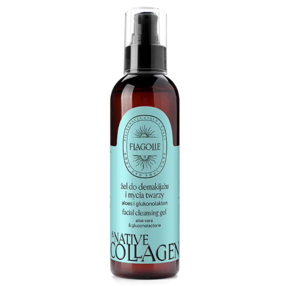 Żel do demakijażu i mycia twarzy z kolagenem (pierwszy i drugi etap pielęgnacji: oczyszczanie) skutecznie, ale delikatnie oczyszcza skórę i świetnie radzi sobie nawet z mocnym makijażem, dzięki zawartości kolagenu, glukonolaktonu i gliceryny dba o nawilżenie skóry już na pierwszym etapie pielęgnacji, ma działanie łagodzące i antybakteryjne (za sprawą ekstraktu z owocu Noni, aloesu, panthenolu), wzmacnia barierę ochronną skóry i zapobiega ucieczce wody z naskórka, glukonolakton ma także właściwości złuszczające, dzięki czemu reguluje wydzielanie sebum, działa przeciwtrądzikowo i zwęża rozszerzone pory.
