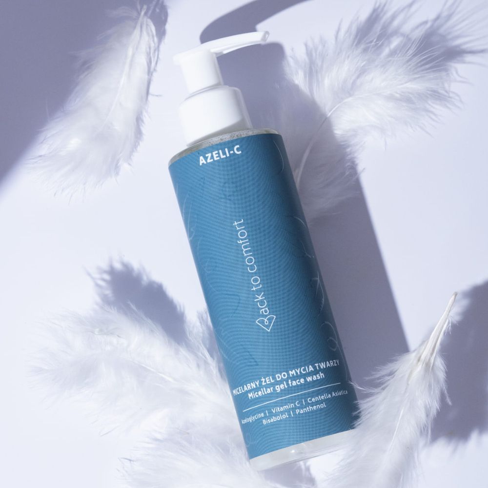 Micelarny żel przeznaczony do oczyszczania cery suchej oraz wrażliwej ze skłonnościami do zaskórników. Azeloglicyna, witamina C i bisabolol, wspomagają regenerację, oraz dbają o to, aby skóra po myciu nie była ściągnieta i wysuszona.