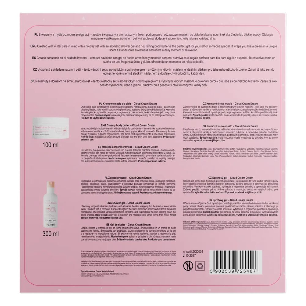 Stworzony z myślą o zimowej pielęgnacji, Nacomi Cloud Cream Dream to wyjątkowy zestaw świąteczny, który wprowadza do codziennej rutyny odrobinę magii. Aromatyczny żel pod prysznic delikatnie oczyszcza i otula ciało subtelnym zapachem, a odżywcze masło intensywnie nawilża i wygładza skórę.
