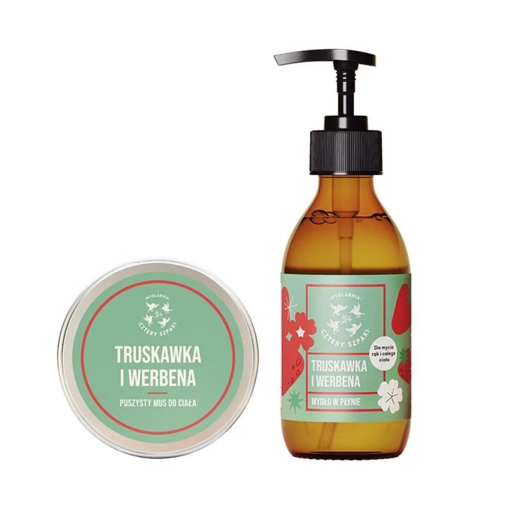 Mydło w płynie Truskawka i Werbena łączy aromatyczną świeżość z delikatną pielęgnacją skóry. Naturalna receptura, oparta na oleju kokosowym, oliwie z oliwek i oleju z pestek truskawki, nawilża, odżywia i łagodzi podrażnienia dłoni. Soczysta truskawka i orzeźwiająca werbena nadają mydłu świeży, subtelnie słodki zapach. Pieni się obficie, łatwo spłukuje i doskonale sprawdza się w codziennej pielęgnacji rąk i ciała. Szklana butelka jest ekologiczna i umożliwia ponowne uzupełnianie produktu.