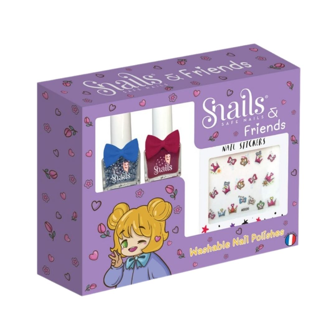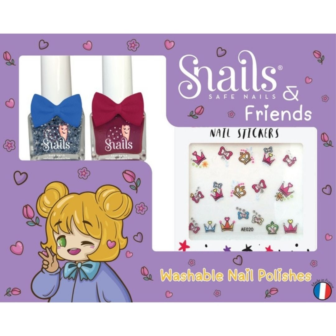 Ten wyjątkowy zestaw zawiera dwa urocze, zmywalne lakiery w bogatych, olśniewających kolorach oraz eleganckie naklejki z koronami, które ozdobią paznokcie każdej prawdziwej królewnie. Pozwól dzieciom zabłysnąć królewskim blaskiem — bezpiecznie i z fantazją!